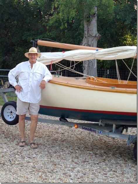 Texas Jim Rester standing beside the Sandpiper he stole from some poor widder lady. After seeing how much these things go for I was impressed at the deal he got, although it did need a "little" work, just like all used boats do.