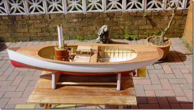 It's really heavy, about forty pounds so he needs a trailer to move it. He still has the interior cabin detail to do but it'll be fun to see in the water.
