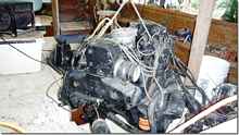 After it was back in I did what I do best, I stood on the ladder and said "well lets fire this som bitch up" and we did and man did it sound great. A 350 Chevy running through basically open headers. Still lots of adjusting and replacing of rubber stuff but this one's a real runner.