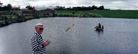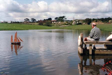 In happy sailing mood at the Sinton road private lake some years ago. How well I remember that shirt he often wore!