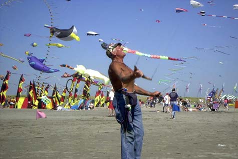 A good activity subject on which to start is the use of the wind, different yet quite similar to the way we model sailors use it, after all it is trlaxing, requires skill and most important, the wind is still one of the few things we don’t have to pay for, because it is still  free !  Watch a new acquaintance of mine, Ray Bethell of Vancouver, Canada as he `romances the wind’ in the most gifted way imaginable, that of flying three kites at the same time, one tethered to his waist