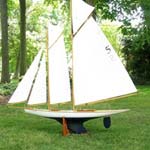 I was producing my little magazine Windling World at the time, and `The Jack Spratt Yachts lady’ (as she called herself) was diligently turning out elegantly built 22 to 24” very detailed free sail model yachts which sailed as well as they looked.