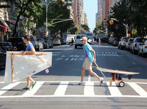 In Central Park, New York, Querin's then new Prospero schooner gets an airing