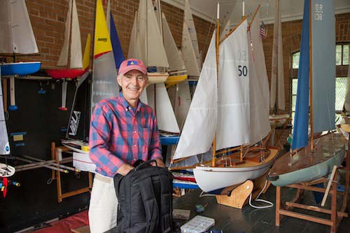 Since his son lives in New York, David has also become a Central Park sailor on visits and has been lucky to have been granted space in the New York Model Yacht Club boathouse where he now keeps the Malabar schooner shown with him in the photo taken there that appears below.