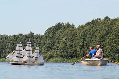 Chiel Gildermans in the boat, gets his big Clipper Stad Amsterdam off on a sail at Bornerbroek