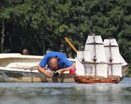 Andrew Charters with his model of Gloriana, another of his fine models.