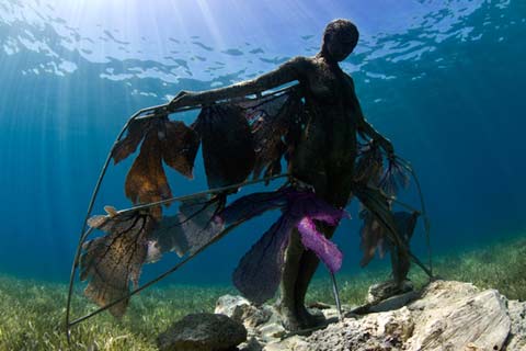 Jason deCairies Taylor's underwater sculpture The Ressurection in its underwater site.