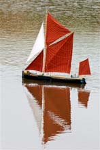 Peter Simmonds of the Isle of Wight, with one of his Thames Sailing barges, this one Haughty Belle with which he won the Bowsprit class race series last year, the trophy having been presented some years ago by the writer for annual competition.