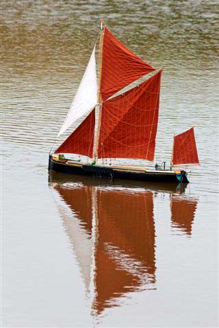 Peter Simmonds lives on Britain’s Isle of Wight in the Channel Islands and is a model Thames Sailing Barge enthusiast, fairly regularly travelling by ferry and car to other parts of Britain to take part in the model Thames Barge racing regattas staged in various parts of the East Coast and Kent by the Association of Model Barge enthusiasts. Several years ago the writer took to Britain and presented to the association a trophy for yearly competition by those sailing barges with a bowsprit, and last year. Peter won the event sailing one of three barges he owns and sails called Haughty Belle.