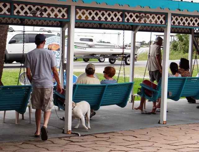 Last set of pictures of Cedar Key. I don't think you've seen any of the dinner on the beach, the best $15 meal we've ever had. Thanks to Ron and the others from the Trailer Sailors. I should also mention that Cedar Key is pet friendly to the max. They have poles with poop bags and garbage cans about every fifty feet. The doggy you see in the first picture is from Alaska and has competed in four Iditarod races.