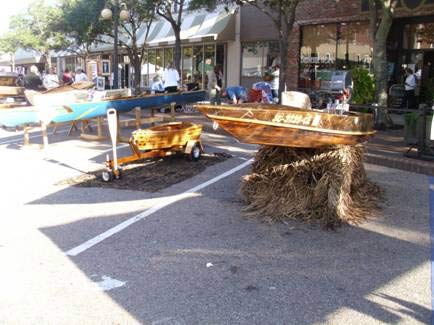 Notice the boat wagon, that’s a wood trailer with a wooden boat. The boat can come off.