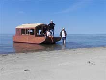 For my sons entire life (he's now 16) we've been exploring Georgian Bay, Ont., Can., and the many lakes in the region. My pleasure has come in part from sneaking over a shallow bar to access areas like this, secluded and wild! We are also able to pull up to a beach and step off without getting our feet wet. I wanted the new "camp" boat to do the same. Shallow draft, 6", ensures this. Also we've enjoyed cruising long distances using very little fuel. The "house" boat can handle a large motor but a 9.8 hp will encourage our exploring without the worry of a prohibitive fuel bill. I was able to trailer the sailboat to new exciting areas and the "shanty" boat will do the same. At 17' X 8' it is legal on all roads and a loaded weight around 1600 lbs will be comfortably managed. I wanted a cabin in the woods but the expense of land and the time needed for maintenance discouraged me. This "cabin" on the water makes a cozy cove home for as long as we choose, our land is a step off the bow and then left to others to enjoy when we depart. While travelling the road it can double as a "camper" at a camp ground or shopping centre.