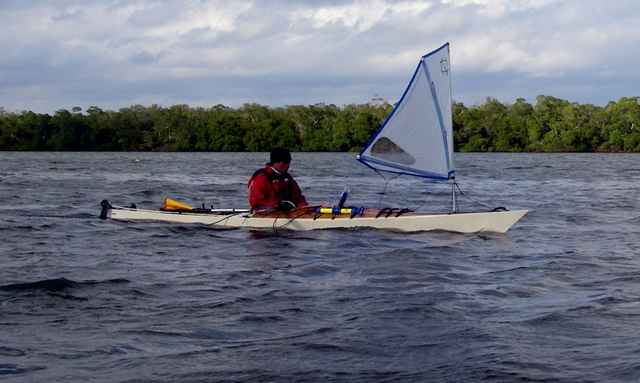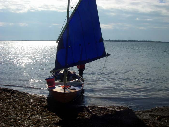 A little note on sailing downwind with mizzen only: reason says this should not work ā it should cause the boat to round up and weathercock. My wife, Sandra taught me this trick. She is not a sailor so is not bothered with sailboat theory. Once, years ago, we were sailing another cat ketch in the Lower Laguna Madre in Texas and needed to slow it down. “Why don’t you just sail with the mizzen” she suggested. “That would never work”, I insisted. “Can’t you just try it? For me?” she stated in that way that cannot be refused. So just to prove her wrong, I tried it. Needless to say, it worked and I have been doing it ever since. I have found that I can even broad reach with the mizzen only. If Sandra had been along on this trip we would not have had to worry over having only two halves of a wit.
