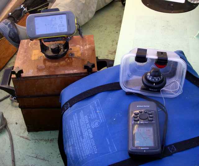 Navigation: Somewhat over navigated as we head down the Everglades coast on a crystal clear, sunny day followed by a clear, star-filled night. At the upper left is Chuck’s new GPS mounted on a special box he built that held a 7 AH AGM battery. A truly neat set up. Except the GPS didn’t seem to like it, proving somewhat tempermental and finally quit altogether (through no fault of this installation) a few hours after this picture was taken. The other GPS is Gary’s veteran Garmin which saw its first EC in 2007 and has a pile of EC waypoints and routes. The compass was our answer to a need for something that was compact, portable and adequately lit. The compass was serviceable but a bit small for Gary’s bad eyes. (This was his fault - he had a larger compass we were going to use but he didn’t find it until after the EC.) The small waterproof lights over the compass were great - no external wiring and plenty of endurance for an EC. These were purchased at a kayak shop.