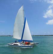The owners were pleased to show off their boats and “talk shop” with everyone. We expect a few new boats to be in build by this time next year! There were three Tangaroas (36’), a Tiki 30, a Tiki 26 (8M), a Pahi 31, and a Narai 42 that was nearby. The Pahi sailed in more than 500 miles to attend. A Tiki 21 almost made it from more than 200 miles away but was becalmed for an extended period in the maze of islands that make up the Florida Everglades and got within about 35 miles of the event, but the sailors made it by bus!