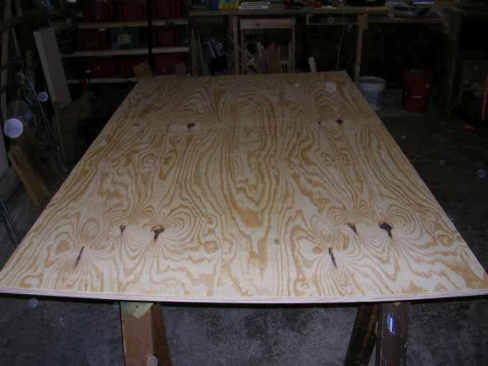| I'm cheap; hence I'm using cheap plywood which has knot holes in one of the faces. By examining the edges of the sheet, it appears to be relatively void free in the core, but the exterior face wasn't so pretty.