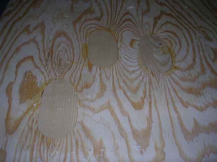 Ugly knot holes in plywood face. |