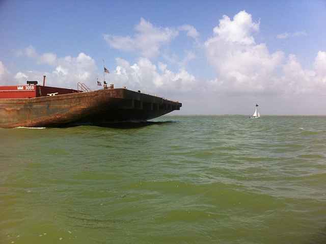 I threw this in, as the picture is priceless... the Mystic Wind is literally 40 Yards at best off the port side of the barge.