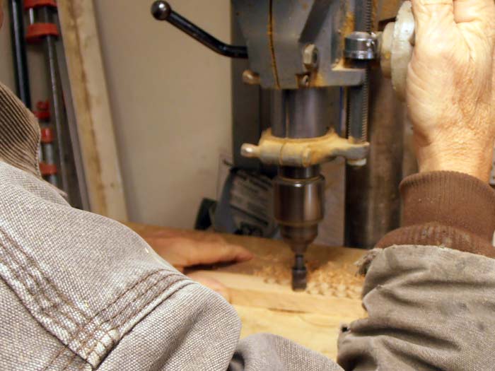 Drill those holes, one after the other. Note that the plug STAYS IN THE WOOD. It DOES NOT come out until the next process.