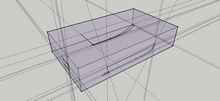 We're going to draw the 2D views of the boat on the sides of this box, and then extrude and intersect these lines in order to create the edge lines of the plywood panels. |