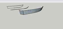 The next stage is to put the side and bottom surfaces on the hull, using these lines as the edges of the surfaces.