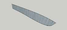 The result after deleting the extruded surfaces is the sheer line in its three dimensional position. |