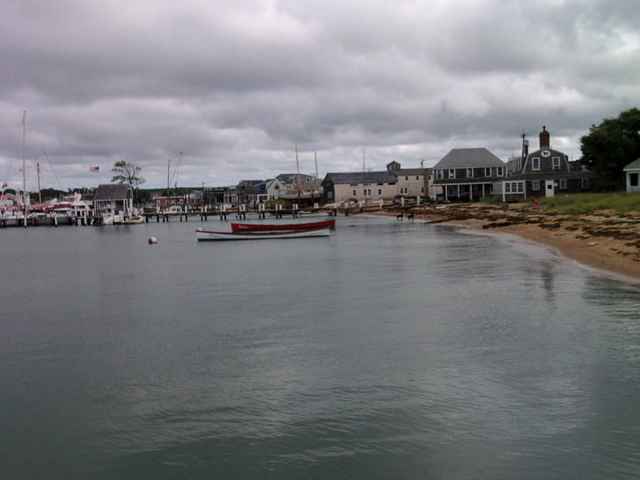 The repairs were hampered by howling wind, and driving rain, and involved lashing a giant tarp over the whole front of the airplane, and then being flogged to death by the tarp as I worked. However, hours later when I was done, the rain was gone and the sun had come out. On the cab ride back to the Ferry I tried to get the driver to take me to the old camp meeting grounds the Island is famous for, but by now the first family was on the move, causing road closures all over the Island and he just wanted to get me back to Vineyard Haven before the road got blocked.