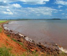 At first light the next morning we make a hurried drove down to the wharf and look out. There on the western sand spit is a tiny dark spot that might be the dinghy. It looks like the strong West wind and rising tide may wash it off and send it back across the harbour. So we hurry home and drive back to the start of the sand spit, covering contingencies with the truck and a set of oars. My wife watches from the truck as I stride out toward the possible dinghy with the oars over my shoulder. The understanding is that she will drive around to the East shore if I am able to launch it and she sees me began rowing across the harbour.