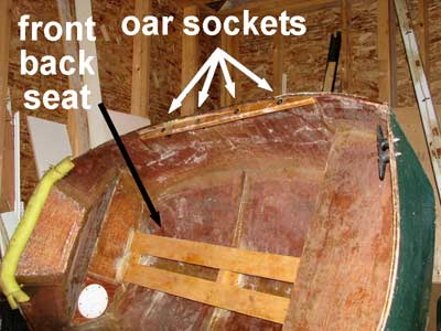 It is a good mile hike to the boat-the sand makes the effort even greater and near panic adds speed to my steps. As I get nearer it was apparent that 'spot' is indeed my dark-green dinghy (about 6' long and made out of plywood and epoxy "stitch & glue" construction). The nearer I get the more it seemed it is rocking in the wind and likely to float off before I get there. When I actually arrive I established that 1) it is truly my dinghy, 2) it isn't going anywhere - it is solidly in the sand and full of water. I cannot even budge it until I use an oar to splash the water out of it. The bottom has is filled with about 12" of sand beneath the water - a sort of bathtub planter. With the water out I am able to tip it over and empty most of the sand. Shed of its contents I am able to drag it the 20' to the water, but wait, what about the flotation chambers? The front one is full of water and the rear has a couple of inches as well. I don't want to risk crossing the harbour without that safety feature, so I twist off the covers and tip it over to drain. Finally, I put the oars back in and launch the boat.