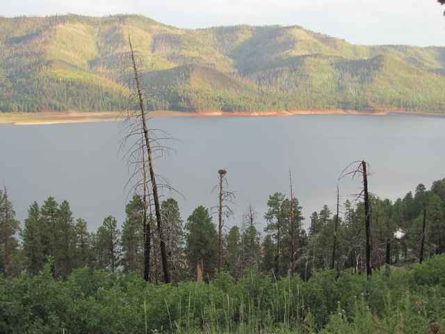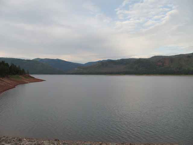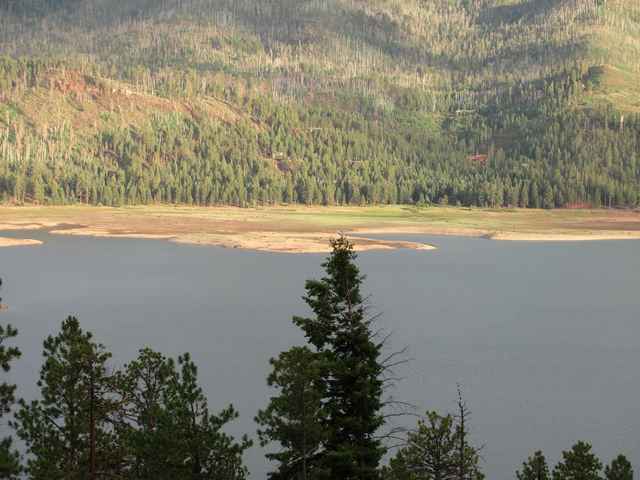 | In July we went back to Vallecito Lake, for our summer vacation. We rented a cabin again. The peace and tranquility there draw us in and we can’t resist. And of course, I love sailing there. We went in June the previous year and the reservoir was full when we got there. This year we went a month later and the water level was down a lot from last year. I understand from talking to some of the locals that the lake didn’t fill up to it’s normal level this year. Much of the islands and shoreline visible this year were under water last year. It rained every afternoon we were there. We sailed in the mornings, took a break for lunch and sailed again. We had a week there, but spent one day in the cabin because it rained all day and took another day to visit Mesa Verde. We had a nice time hiking around at Mesa Verde and looking at the ancient dwellings. It was a great history lesson and we had some fantastic views. There was a full moon while we were at Vallecito. With the balcony of the cabin looking out over the lake, it was magical. After the sun went down we could see the glow of the moon on the water of the lake as well.