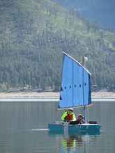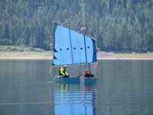 The blue sail is my puddle duck headed away from the beach by the boat ramp. |