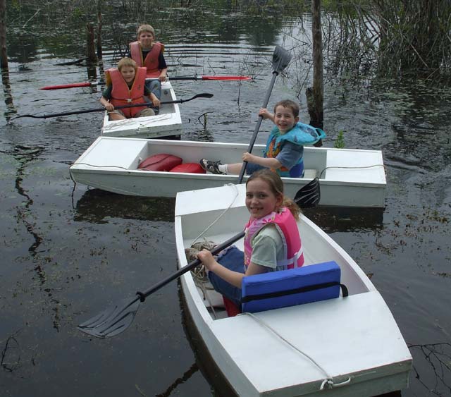 Same canoe, same kid (in the bow), same pond. My B-I-L and I get back from chasing the kids up and down the pond in their new mice. As you can see in the pictures at the launch area there is no need for a push pole now. |