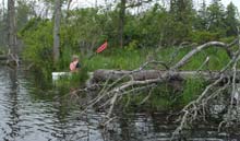 Taking advantage of the new water level I opened up a new launch on the corner of my parent's property. (Turns out I was a few feet onto the other guys land at my boat launch before.) Between the beavers making a wide channel to get to the trees near there, and the new water level, we now have a nice wide channel going out to the open water, so we don't need the push poles now, but I did find a couple stored in my parent's garage. Today, as you turn into my parent's driveway, if you look off to the left, you can see the channel leading out onto the lake where the ice cakes were once towed in.