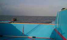 Arriving at the island I headed as far into the SE corner as I dared in the dark to try to get some protection from the strong south wind and heavy chop. As soon as I found some smoother water I dropped sail and when the boat stopped I lowered my already-prepared anchor. The water was shallow, maybe 5 feet, so I put out about 50 feet of rode. Despite the relatively smooth water, the low island did nothing to block the wind, and El Gato Gordo has no shortage of windage! After the anchor seemed to be set, I began to prepare a dinner of reheated chili and a cold Red Stripe. I was watching both my GPS position and the lights around me, and before long I knew the anchor was dragging. The Danforth anchor had held in worse conditions, and most of the bay has deep nasty mud, so I was surprised at the situation...not to mention spooked about dragging into the island into the dark.