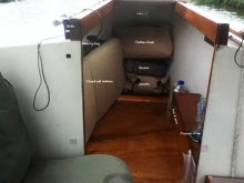 Although this little skiff never leaked a drop over several years of battering about the waters of the U. S. and Europe, her 1/4” plywood hull is upon examination heavily scarred, cracked, and gashed. She suffers a particularly bad foot-and-a-half-long slash in the bows, luckily well above the waterline. All of these were preventable, and most were due to inattention or failure to put out adequate bumpers in locks and docks. Nevertheless, I think the hull sides are the AF4b’s most vulnerable area. A layer of cloth and glass might not add too much weight.