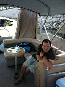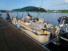 Even though his boat has 115 hp, upholstered seats, porta toilet, Grill, Stereo, and various other amenities, we let him hang around with us because he slows down his cruise and waits on us.