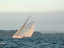 The Mahurangi regatta is an annual event, mainly for classic and traditional yachts we see everything from tiny trailered home built dinghies to 70 ft classic racers from the early 1900s or even older. These graceful old racehorses make a race of the journey from Auckland to Mahurangi, overtaking me on the run toward the rivermouth harbour. They had perfect conditions for real speed this day, roaring along under a huge press of sail with the sails glowing rose red in the sunset, the crew working hard all the way and very kindly sailed through my lee so as not to blanket the wind of a much smaller sister, that’s nice!