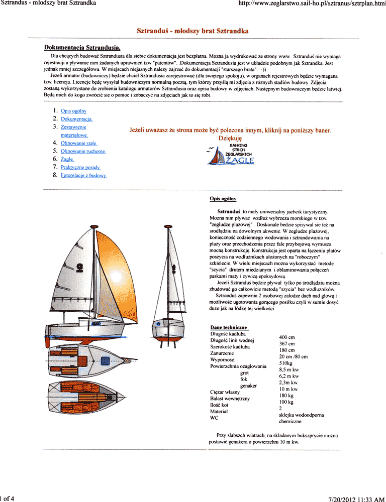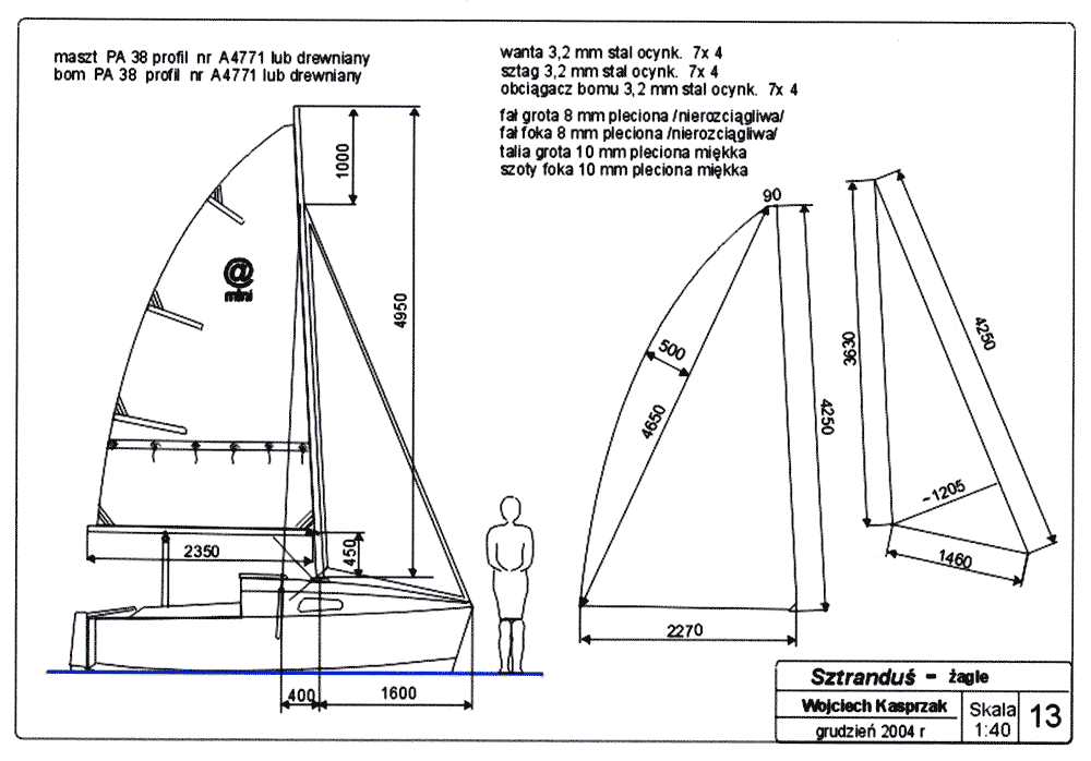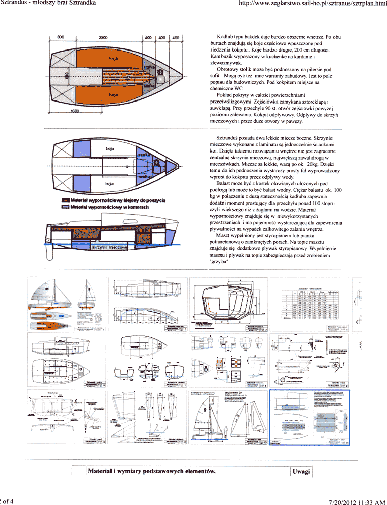 Then one day, while searching the internet, I came across a 13ft design out of Poland, called "Sztrandus" that really struck me as the answer to what I was looking for. After careful study of the design, it was exactly what I had in mind. It looked like I could get 2 - 6ft 6in bunks, a port-a-potty, galley area and self bailing cockpit all in a 13ft boat. Soon it became something that I knew I had to bring to life.