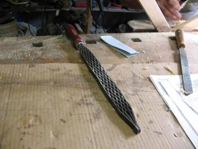 And the tools of choice. A Shinto Rasp, a bastard file, and sand paper.