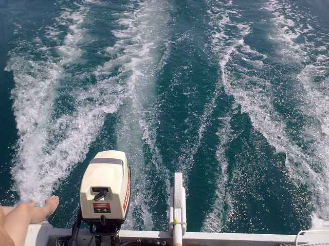 Motoring - I found out that short shaft is OK when at least 200kg is in the cockpit. So we were motoring with this one. With fixed outboard and rudder, it reacts excellently. If turning the rudder and outboard synchronously, it turns anywhere - reminds me on Russian Pancer PT-76 on which I served 30 years ago in Jugoslavian army. You could do anything you want, even cross directions and have different maneuvers. Very usable.