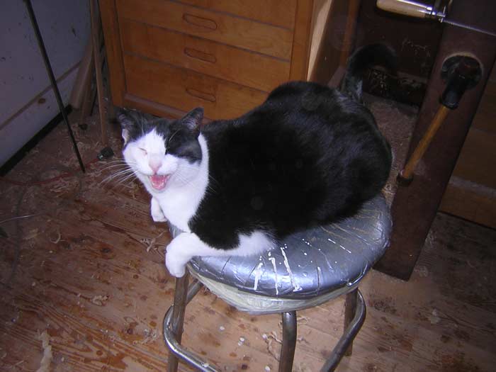 Now the boat is snugged down in the barn for the winter. Many people have asked me how long this build took. I actually don't know but I know for a fact that I could have finished about 2 months earlier if I was not required to twirl my cat around on the swivel stool twice a day. He would come into the shop and disrupt work until he was given a spin. I believe I also wasted about 2 months looking for my pencil. The boat was built over three winters.