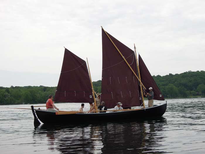 There was not much wind, but we did pull out the sails and fiddle with the set up. The mizzen was easy, the main was not. The 16' sprit is a handful even when it is not blowing and requires at least two people who know what they are doing.