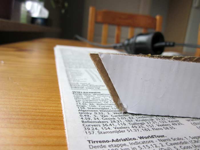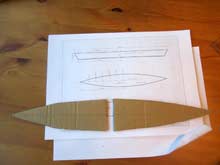 | Looking for a simple canoe to build out of plywood. I stumbled upon the “Cheap Canoe” from www.bateau.com. To get a feeling of the building process and also it’s 3D dimensions characteristics, I decided to built a model on scale (1:10) in carton-board.