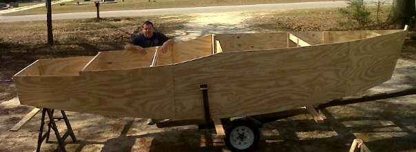 The bottom was glassed, seat and bridge deck framing, gunnels, and cabin rails and tops added. |