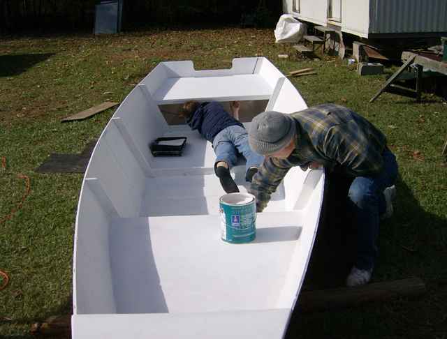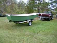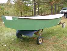 The interior was primed and painted with a high quality exterior paint; the exterior received two coats of a high quality two part marine paint. Total cost for materials about $550.00 and about 60 hours of labor. The boat will be kept indoors in a garage protected from the elements, and will powered by a 3.0 Sears Gamefisher. Launch date set for January or February of 2013.