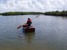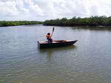 | As a boat builder I am starting number 17, the itch never seems to be satisfied. I was seriously looking at Jim Michalak's AF4 BREVE. I ordered the plans and started looking for materials. Discussing the build of a 16 foot motor boat with a fellow paddler I was forced to face reality when he mentioned a trailer and title plus registration and tag plus boat title, registration and numbers, along with an outboard motor and gas and oil. Did I want to really want to go through all that? Now I throw a boat in the back of my small pickup and go. Well maybe I should look at Jim's many other offerings of boat plans. I love Jim's TOTO with its sleek lines and beautiful profile.
