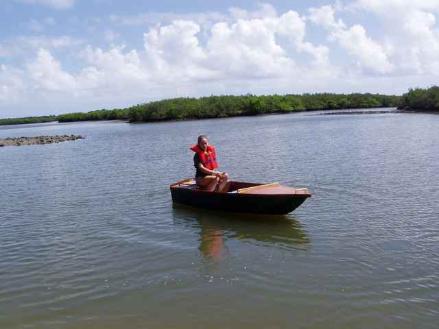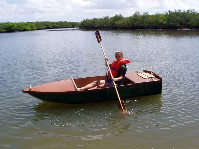 This is a short fat 'TOTO'. The cockpit is four feet long and open to the bow. The floor is 1 x 2 strips to stiffen the sides and bottom.