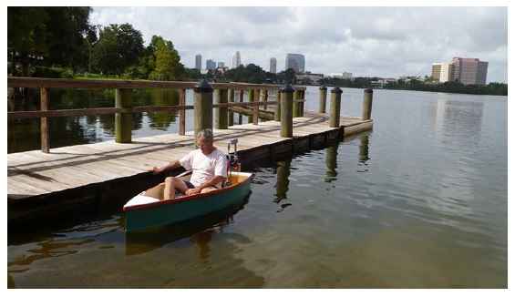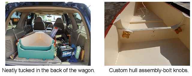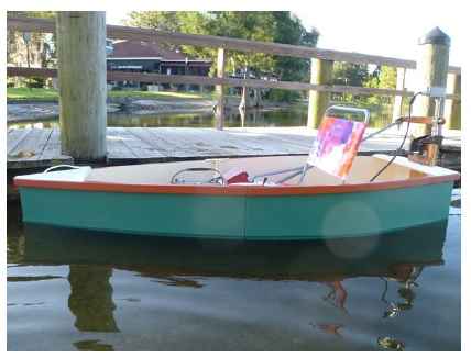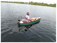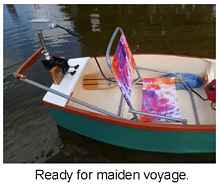 After all the details were worked out, the hull sealed and painted, the motor and battery location established and the seat selected and purchased, the only thing left to do was to get it in the water. These are the following pictures.