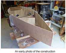 I guess I really started building boats when I was a teenager, my first when I was in junior high school shop class. It did float and I ran it with a small outboard for a couple years. I built a 12' outboard racing runabout and used to fly around the bay near the house with a few other guys that had about the same kind boats. Lots of fun in those days! Took some time off, got married and started raising a family. Then I built a 20' house boat that never got finished. Used it a while when the second child came along, we found it was too small. I then found some rot in the hull and brought it home. Instead of fixing it, I took the cabin off the hull and made a playhouse for the kids. They had a ball in there for a while.
