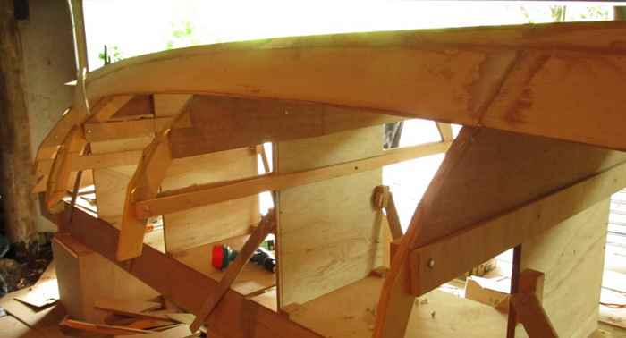The interior of the boat is where I deviated significantly from the original design. It is a nervous moment when you strike out on your own, but over the preceding months I had formulated a strategy to produce a strong boat of absolute simplicity and also accomplish some things not possible with the original design.
